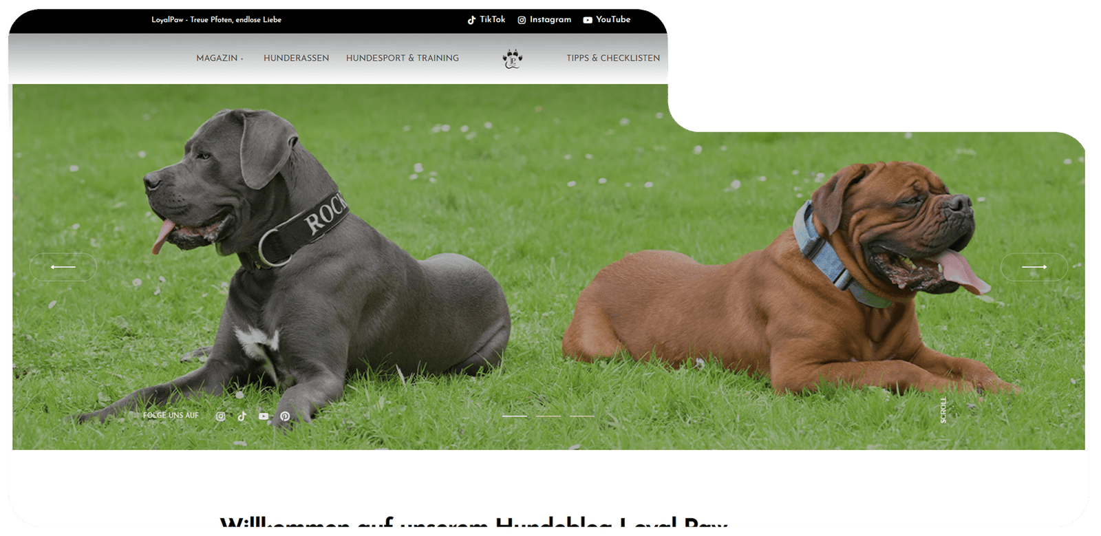 Für LoyalPaw haben wir eine lebendige Plattform geschaffen, die weit mehr ist als ein einfacher Blog: Hier dreht sich alles um Hundeliebe, hundgerechte Tipps & inspirierende Geschichten. Unser Ziel war es, eine Seite zu entwickeln, die Vertrauen aufbaut, verbindet und allen Hundemenschen ein digitales Zuhause bietet.